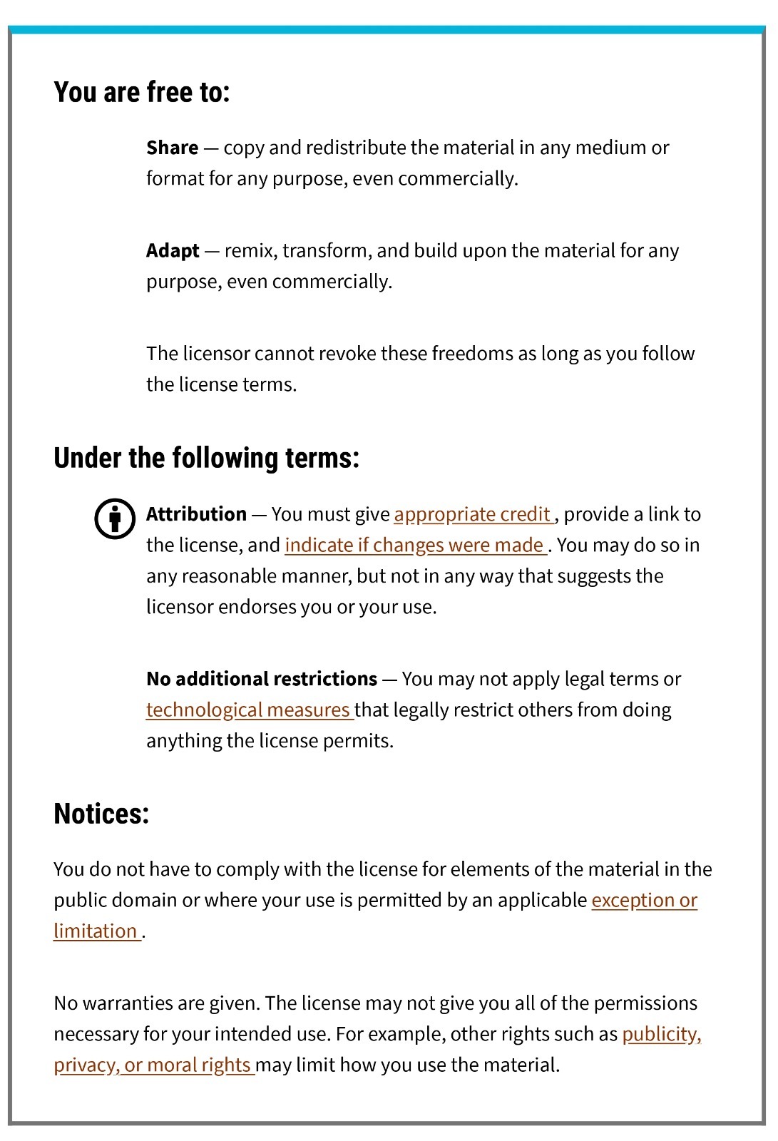 BY: credit must be given to the creator.
